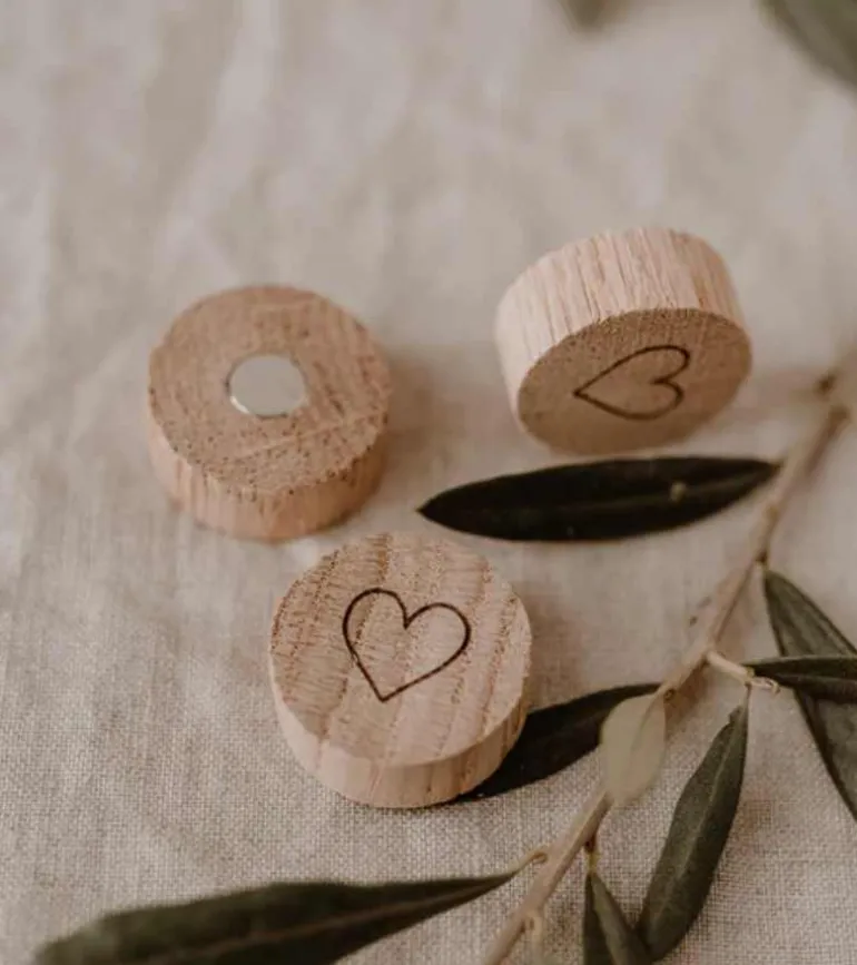 Det specielle ved vores egetræsmagneter er de kærligt designede lasergraveringer på forsiden. Dette sæt består af tre hjerter. Fantastisk til at holde styr på alt på køleskabet eller magnettavlen. Alle magneter er lavet af egetræ. De har en diameter på 2,5 cm og en tykkelse på 1 cm.